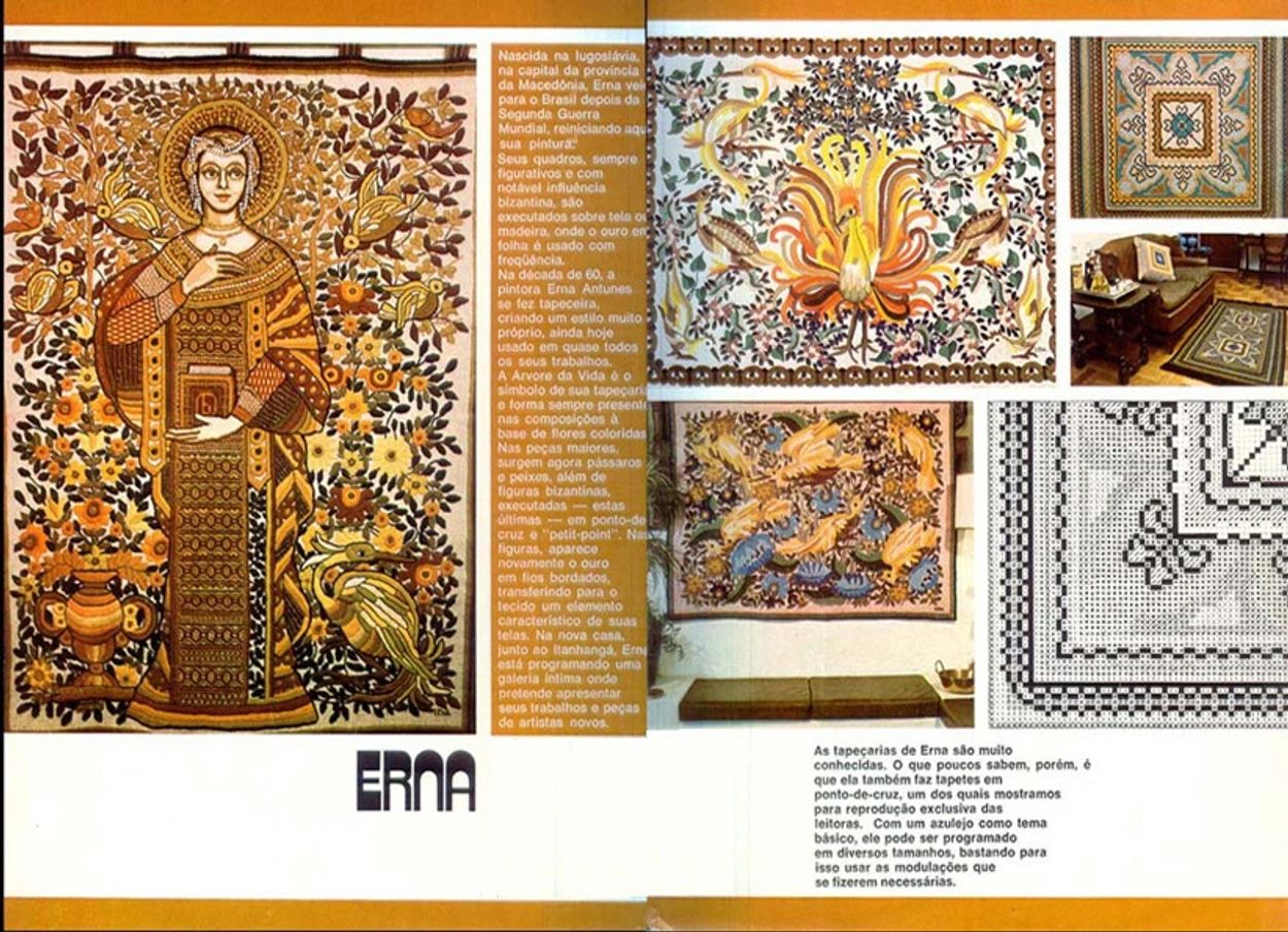 No Brasil, Erna Antunes trabalhou continuamente em suas pinturas, esculturas e tapeçarias. Membro da Academia Brasileira de Belas Artes em 1969 e agraciada com a Comenda de Ouro Pedro Américo. Em maio de 2008 (Paris), foi homenageada com o ¨Diplôme De Médaille de Vermeil¨ pela Sociedade Francesa de Artes, Ciências e Letras, fundada em 1915.